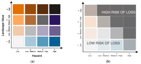 The literature on sustainability and hazard or risk mitigation is now extensive and includes academic, practitioner, and governmental consideration of the need to adopt sustainable approaches to hazard and risk management [29]. While environmental risk assessment is broadly applied to identify the danger the environment is exposed to in relation to the different types of hazards, on the other hand, landscape risk assessment related to the landscape value is an under-evaluated and investigated tool. Landscape risk appears to be a more uncertain issue where approaches are focused on the visual impact of changes in land use due to human activities (i.e., the construction of new buildings or infrastructures) [30]. Overall, very few publications connect the assessment of landscape with land use decision-making. For example, MULBO model framework (Multi-criteria Landscape Assessment and Optimization) is a spatially explicit decision support method on the basis of risk evaluations for landscape function that aims to establish optimal land use patterns as scenarios that are balanced compromises between conflicting goals for the reduction of assessed risks [21].