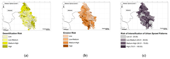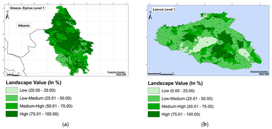 Landscape Risk Assessment (LRA) maps for the two areas in Greece: (a,b).
