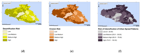 The LRA LDSS model conceived for MEDSCAPES aimed to develop a tool that helps in the process of landscape decision-making for the protection of the natural and cultural heritage of the Eastern Mediterranean area. It was formulated by building on the Landscape Characterization procedure by relating/integrating its findings into the Landscape risk assessment within the framework of a decision support tool. This was a means of assisting administrators/stakeholders in the planning process through scenarios that were drawing modifying weight and rank of the indicators. The literature on LCA, RA, and DSS reveals that in the past decades different models have been built to facilitate the decision process, thus providing a basis for the definition of adaptation measures and planning strategies. A study by Frede et al. (2002) discusses sustainable planning through understanding multiple functions of the landscape, based on spatial analyses and assessments [59]. The MULBO model offers a framework of tools to integrate assessments of landscape functions into land use decision-making [21].