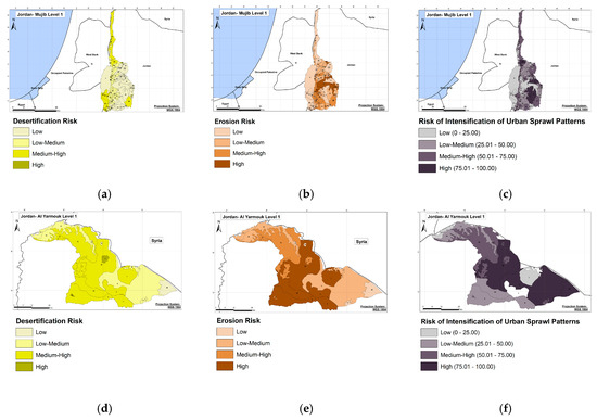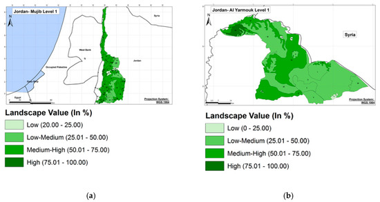 Landscape Risk Assessment (LRA) maps for the two areas in Jordan: (a,b).
