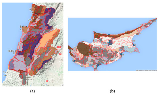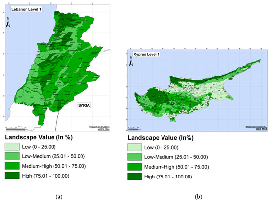 Landscape Risk Assessment (LRA) maps for Lebanon (a) and Cyprus (b).