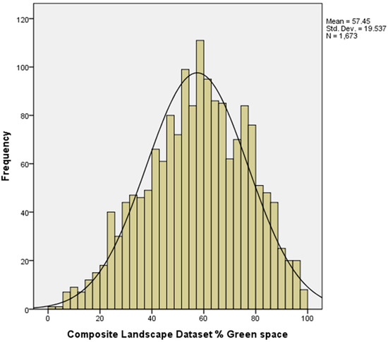 The association between urban form, landscape and socioeconomic conditions has long been recognised [31,32] and research on the topic continues to provide insight in studies focussed on social-ecological dynamics and human well-being, particularly in an urban context [33,34,35]. The underlying premise of a green infrastructure approach relates to the multiple benefits that may be obtained from well-connected ecological networks for human well-being. However, studies into health and well-being benefits of urban nature have come largely from the public health and social sciences. Understandably, these disciplines have tended to pay more attention to human processes and outcomes with relatively little emphasis on characterising the physical and ecological characteristics of the natural environment in their assessments. There has been considerable use of broad density-based metrics. For example, Maas [36,37] employed dominant land cover (agricultural, natural and urban green) at a 25 m spatial resolution in their assessments on proximity to greenery and population health in the Netherlands. This resulted in street trees and roadside greenery being largely excluded from the model [37]. Furthermore, the emphasis was on using categories to estimate a percentage green space cover. Mitchell and Popham’s [2,3] seminal work exploring the socioeconomic subtleties in the strength of the relationship between green space and health in the United Kingdom, used 5 m percentage green space cover. However, this indicator did not discriminate between the type, quality or accessibility of spaces that are categorised as green. Similarly, research has failed to consider the relevance of landscape-based metrics as indicators of environmental quality. Therefore, the development of new spatial data that account for the qualities of landscapes in which people live, as opposed to a purely quantitative consideration of green space cover, are needed. Such novel datasets allow more sophisticated approaches to analysing urban human well-being as well as being useful for a range of other purposes, such as urban planning.