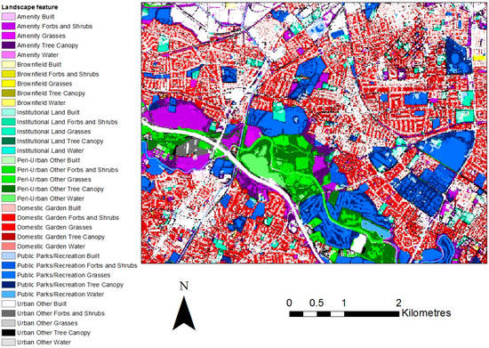 Final classification of the ILM dataset into 35 classes of landscape features (contains Ordnance Survey, 2017; European Space Agency, 2016 and City of Trees 2011 data).