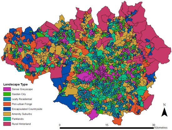 The distribution of all types included in the final landscape classification throughout the Greater Manchester area is presented in Figure 11.
