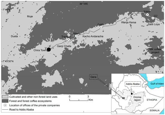 26. El Ouaamari, S.; Cochet, H. The role of coffee in the development of southwest Ethiopia’s forests: Farmers’ strategies, investor speculation, and certification projects. Soc. Nat. Resour. An Int. J. 2014, 27, 200–214. [Google Scholar] [CrossRef]