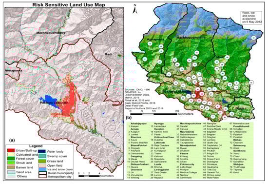 (a) Risk-sensitive land-use map of 2016; and (b) multihazard risk area in Kaski District.
