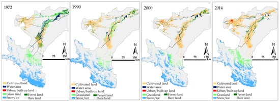LC map of study area in 1972, 1990, 2000 and 2014.