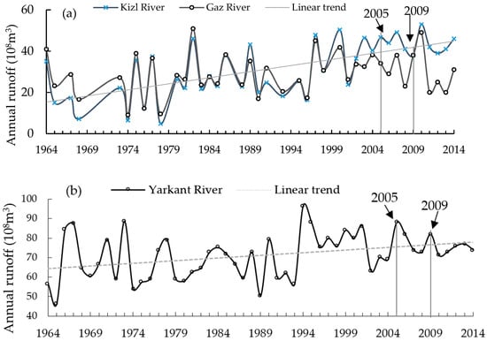Runoff variation of Kashgar River (a); and Yarkant River (b).
