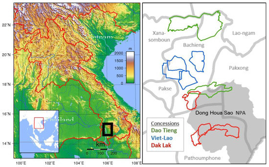 | 2 | Viet Nam-Lao Rubber Group (VLRG) boundaries were digitized from Obein [23], while other boundaries came from primary data shared with the third author by anonymous sources at the Lao National Management Authority (NLMA), a central government agency, in 2008. |