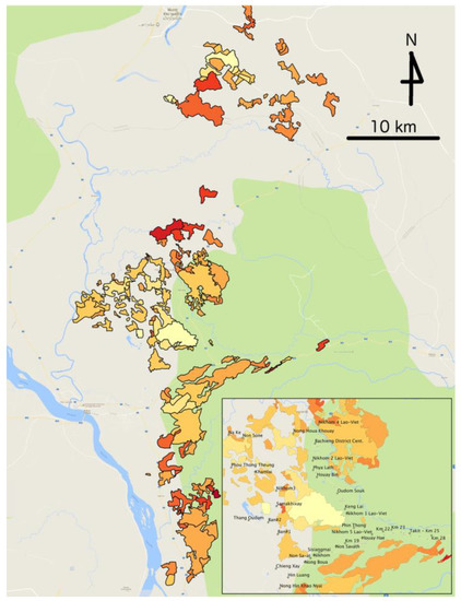 In the context of the Lao concession boom, between the mid-2000s and approximately 2012, the approach documented here addresses a number of important gaps. First, concession area locations approved by government agencies, to the extent these are well-defined, are often altered significantly during the course of implementation. Whether this is a good or a bad thing depends on circumstance; accommodation to local conditions that were not evident when plans were made can reflect implementation that is reflexive rather than simply by-the-book; but it can also be an indication of poor planning, if plans were un-matched to conditions on the ground. Research capable of differentiating between these two scenarios has located actual concession implementation at the intersection of differential local resistance and competition over land-based rents among different state actors [13,29,30]. But as Hett and colleagues show, tracking the relationship between planned concession areas and areas actually developed is a tall undertaking, and requires an additional level of investigation in order to explain why mismatches between planned and actual concession areas take the forms they do [31]. By pairing grounded and collaborative fieldwork with remote-sensing-based analysis of land use change, this study seeks to bridge pattern and process and, in doing so, understand when conformance with “the plan” is important to pursue from a good governance perspective, versus when it might be a red herring that detracts from legitimate accommodation to local circumstances.