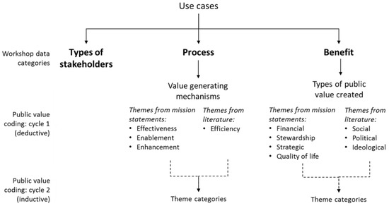 In an initial review of the data, a high degree of overlap was found in the data produced in the asset management use case and other use cases in flood management and resilience, hence the outcomes of the asset management workshop were excluded. Of the remaining five use cases, four use cases collected data in the following similarly structured ways: identifying stakeholders (who stood to benefit), the process through which value is generated, and the actual benefit itself. This aligns both with a view to discovering what public value is perceived to be created (benefit), and how this value is being created (process). Consequently, the final four use cases used for data analysis in this paper are: flood management, 3D cadastre and valuation, resilience, and urban planning.