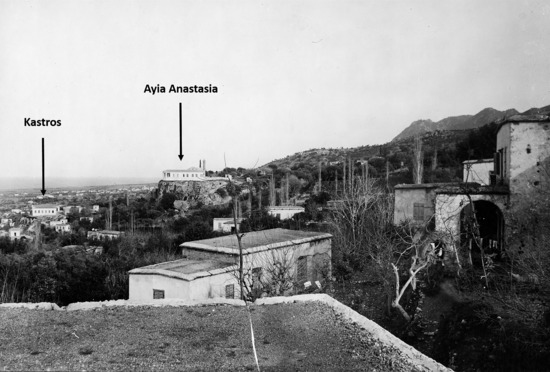View of Lapithos village from the west, showing the plateaus of Kastros and Ayia Anastasia (© Medelhavsmuseet, Stockholm C06274). Photo taken in 1927.