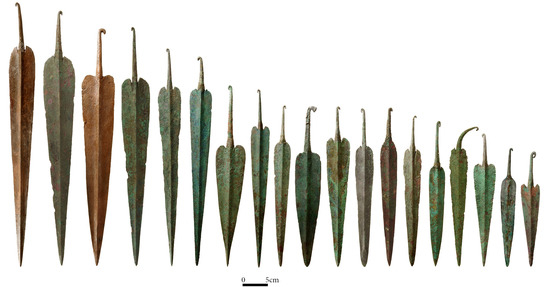 - Wheeler, E.C. Metal artifacts. In Vasilikos Valley Project 1: The Bronze Age Cemetery in Kalavasos Village; Todd, I.A., Ed.; Studies in Mediterranean Archaeology 71.1; Paul Åströms Förlag: Göteborg, Sweden, 1986; pp. 159–165. ISBN 9789170812286. [Google Scholar]