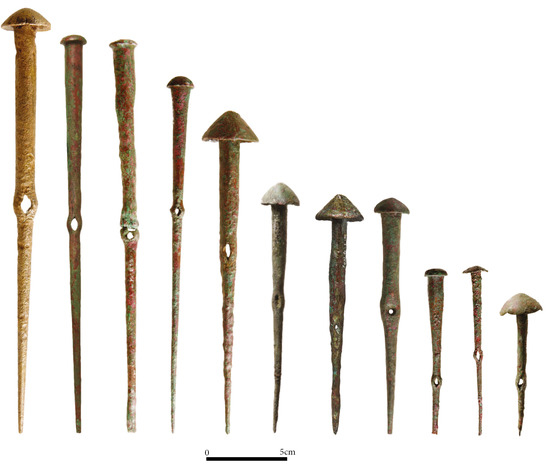 - Egeli, G. The metal pins from eastern and southeastern Anatolia during the third and the beginning of the second millennia B.C. In Readings in Prehistory. Studies Presented to Halet Cambel; Graphis: Istanbul, Turkey, 1995; pp. 175–216. ISBN 9789757783039. [Google Scholar]