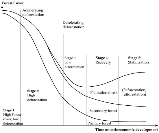 Stages of forest transition curves. Source: adapted from Inoue [] and Angelsen [].