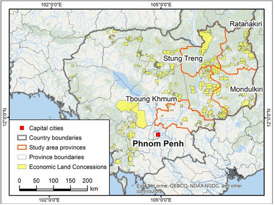 - Open Development Cambodia. 2015. Available online: https://opendevelopmentcambodia.net/topics/concessions/ (accessed on 12 June 2018).