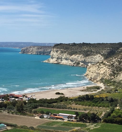 View from Kourion of limestone plateau and cliffs. Photo: L. Steel.