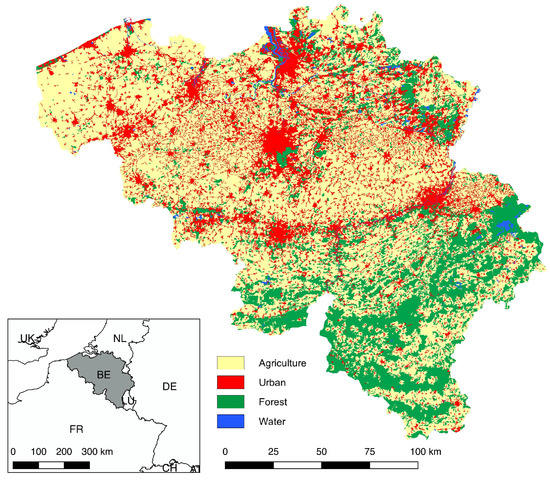 Land use in Belgium according to classification of Corine Land Cover data [47].