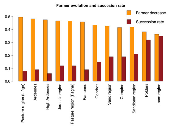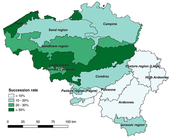 Succession rate for agricultural regions in Belgium.