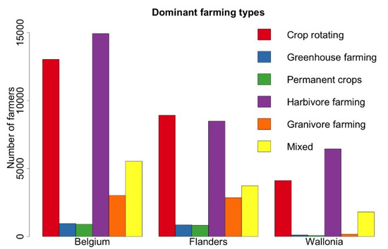 Number of farmers of each type in Belgium, Flanders, and Wallonia.