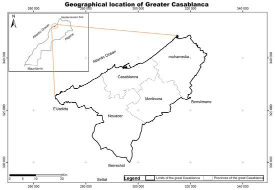 - Regional Inspection of Housing, Urban Planning and Spatial Planning of Greater Casablanca. Greater Casablanca Region. Territories: Challenges and Ambitions. SIPAMA, Casablanca. 2010. Available online: http://casainvest.ma/sites/default/files/etudes/Amenagement_Casa_defis_ambitions.pdf (accessed on 7 August 2018).