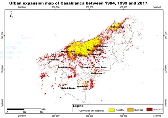 - Zerhouni, M.; Hakdaoui, M.; Fadil, A. Combined Approaches for the Automatic Detection of Urban Areas: Application to the Study of Urban Sprawl of Casablanca. Int. J. Adv. Res. 2016, 4, 30–43. [Google Scholar] [CrossRef]
