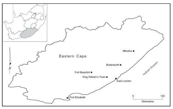 The Eastern Cape province is situated on the south-eastern seaboard of South Africa and is the poorest and second largest province in the country [31]. The province is home to approximately 6.6 million people, about 13% of the national population [31]. It is characterized by arid areas in the northern parts, the Drakensberg mountains in the northeast, while the southern and eastern parts of the province are bordered by the Indian Ocean. The province is situated in the transition zone where the Mediterranean winter rainfall region of the Western Cape changes to the subtropical summer rainfall region common across most of the country. At a provincial level there is mainly winter rainfall in the west, year-round rainfall along most of the coastal areas and adjacent interiors and summer rainfall in the east and hinterland. The Eastern Cape is characterized by low literacy rates, high unemployment levels (>35%) and poverty [32], with these being higher in the more rural municipalities and lower in the larger towns and cities [33].