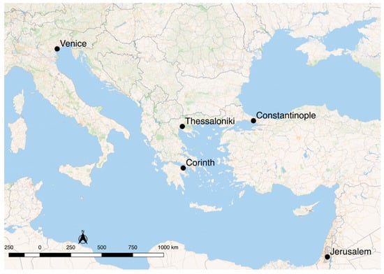 The late 11th and mid-14th centuries in the medieval Eastern Mediterranean are marked by the cultural and economic transformation of the societies living on its shores. In particular, the 11th and 12th century witnessed the economic growth of the Byzantine Empire, the dissolution of the Byzantine Empire in 1204 by the fourth Crusade, and the establishment of the various Crusader States on its shores [1,2,3]. Moreover, the restoration of the Byzantine Empire in 1261, by Michael VIII Palaelogos, did not signify the recovery of all the Byzantine lands from before 1204 [4] (p. 804).