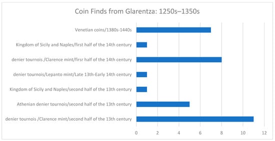 Single coin finds from Glarentza: 1250s–1350s, based on the report of Athanasoulis and Baker [66] (K. Ragkou).