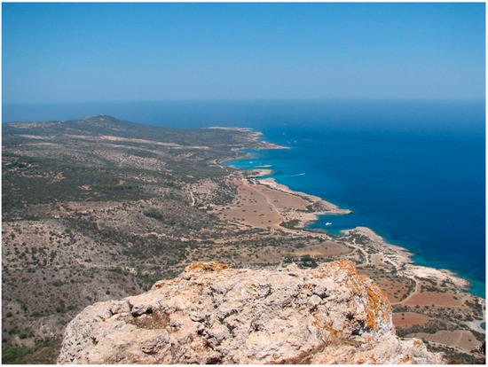 Yet such ports’ centrality also marks them out as places that could be fundamentally different to inland island towns, which were located at a distance from the coast and were thus more disconnected from the greater maritime or “global” world. Such coastal/inland social and cultural differences might have been especially marked during pre-modern eras that lacked the telecommunications and transportation technologies we now take for granted, such as in Cyprus during the 19th century when mules were the primary vehicles for inter-city travelers [35]. However, even today, despite our technology, it is likely that most people who engage in an anabasis from a Mediterranean island harbor to a hinterland town will notice how the landscape and altitude, and with it, the perspective of its inhabitants, changes as one heads towards what seems, somewhat paradoxically, an internal frontier—a central region from which there is nowhere to go but back to the coast. In modern Cyprus, one might still experience this phenomenon traveling from the port of Larnaca to the farming villages of the Malloura Valley (an agriculturally fertile region situated in the island’s Mesaoria plain; Figure 3), or traveling from the port of Limassol to the alpine villages of the central Troodos mountains. Fernand Braudel also noticed what he called “the historical poverty at the heart of all islands” in the mountains of Cyprus where “there stretched one of the most characteristic no-man’s-lands of the Mediterranean, the refuge of the poor, bandits, and outlaws” [14] (p. 154). Hence, one phenomenon of the island port city might be that the more integrated into external networks it becomes, the more its connections to the hinterland and its way of life are altered. Given the lack of archaeological evidence for large-scale urban centers in the Cypriot hinterland during Roman times, it seems that port cities did take on a central role vis-à-vis their complementary regions and that such changes in settlement hierarchy led to different socio-cultural experiences.