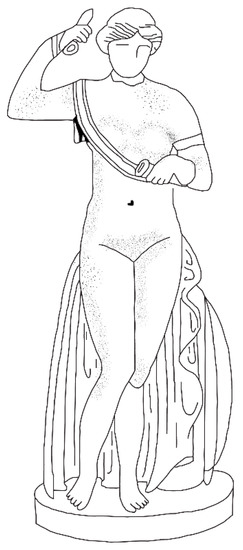 A reconstruction of the Aphrodite Armata statue from the House of Theseus at Nea Paphos. Digital drawing by J.M. Gordon, after Daszewski 1982, p. 199, Figure 1 [77].