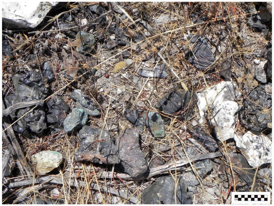 Jennifer M. Webb and David Frankel have associated the appearance of Alaminos and similar sites on the south coast and in the central lowlands of the island with the establishment of settlements near copper ore deposits [25] (pp. 73–75). As we emphasised above, however, the good quality mines are located on the other side of the Troodos Mountain range. Our team has identified slag concentrations at the east of the survey area (Figure 10), although these come from a later, probably Hellenistic, Roman or mostly Late Antique date, based on the ceramic evidence from these transects. It is true that, so far, we have not recovered any signs for copper processing from the Early and Middle Bronze Age site of Alaminos. It is more likely that Alaminos-Kambos was a waypoint on a trade route along the south coast [23]. According to Webb and Frankel, Early Bronze Age communities on the south coast and in the central lowlands may have been subject to lower levels of social pressure than those in the (nowadays occupied by Turkish military forces) northern region of the island. For example, funerary practices and architecture, as in the cases identified by our team and the Department of Antiquities in the Xeros River valley, show relative simplicity and uniformity in comparison with evidence from the north part of the island [25] (pp. 73–75). Tombs on the south coast and the central lowlands are either relatively simple small chamber tombs or pit graves; dromoi are rarely evident and appear to have been intended simply to provide access to the chambers rather than a space for performance as in the case of the north coast. In addition, these communities living in the south coast and the central lowlands were probably largely self-sufficient in comparison to the north of the island, where they seem to have had intensive external contact ([26] cf. [27]).
