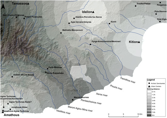 - Papantoniou, G.; Kyriakou, N. Sacred landscapes and the territoriality of Iron Age Cypriot polities: The applicability of GIS. Am. J. Archaeol. 2018, 122, 541–577. [Google Scholar] [CrossRef]