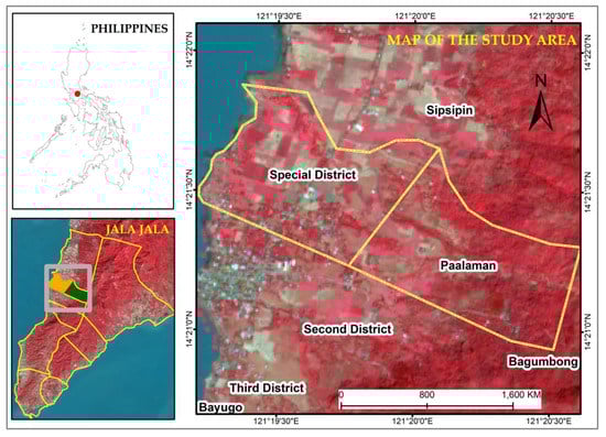 The municipality forms a part of the peri-urban areas around Manila and a part of Laguna de Bay ecoregion. The Laguna de Bay ecoregion is affected by the urbanization of Manila conurbation. This urbanization has led to pollution of water bodies, alteration of the flow regime of the tributary rivers of the Laguna Lake (Figure 2) by structural adjustments, increasing built-up areas and croplands, all of which have combined to deteriorate the watershed environments of the region [], deteriorating resilience of the urban and peri-urban ecosystems.