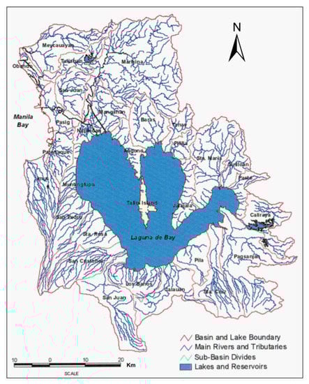 - Laguna Lake Development Authority Hydrological Map. Available online: http://llda.gov.ph/hydrological-map/ (accessed on 9 November 2019).
