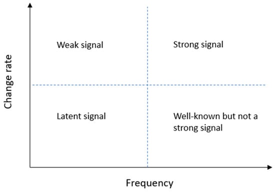 First, we elaborate the concept of weak signal more closely—what are its characteristics and relations to other future issues such as trends. Also, other issues such as wild cards are briefly discussed. The terminology used is broad; thus, we should define how to approach weak signals in this article. We use the definitions of Hiltunen (2010), although there are various futurologists discussing the definitions []. According to her, weak signals are the first signs of new, emerging issues but with significantly low visibility. It is important to emphasize that weak signals are not visions but represent existing issues.
