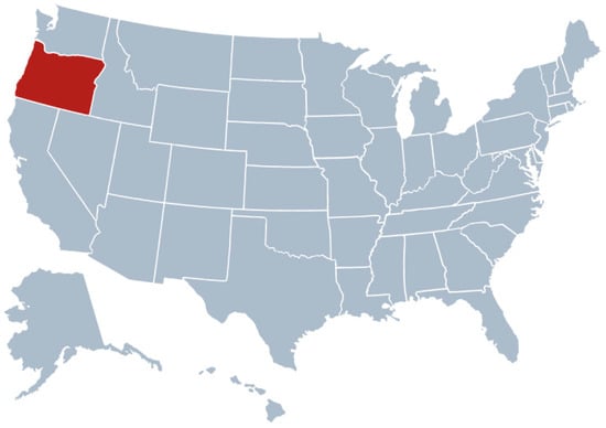 - Oregon. Available online: https://www.50states.com/images/redesign/maps/or-largemap.png (accessed on 7 February 2019).