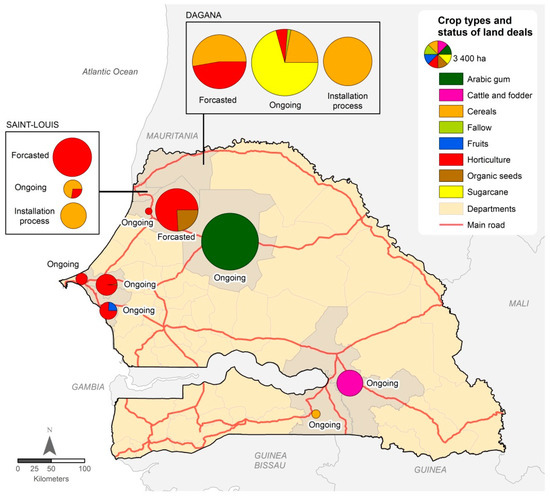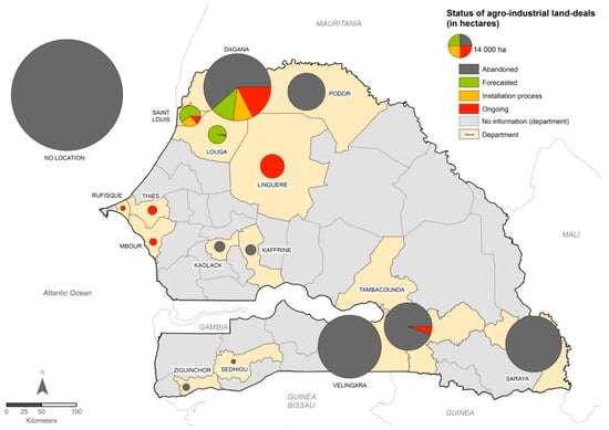 49]. However, these types of investments are numerous, concern small areas, and are even more challenging to document. In this paper, we made the choice to only address foreign land acquisition, since our intent is to provide information on foreign land acquisitions in Senegal’s agricultural sector. While we acknowledge that investments that were made by domestic stakeholders should be considered in a global assessment of land acquisition dynamics [