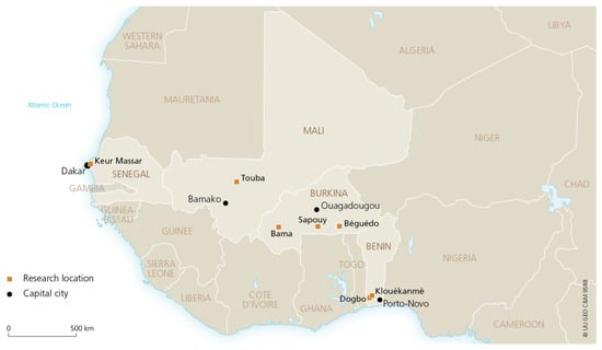 - CIA Factbook Country Pages Benin, Burkina Faso, Mali, Senegal. Available online: www.cia.gov/library/publications/the-world-factbook/wfbExt/region_afr.html (accessed on 18 February 2019).