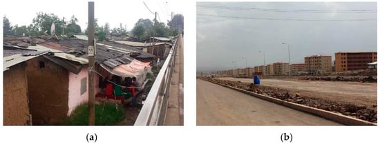 Example of informal housing area (a) and new condominium housing (b) in Addis Ababa, Ethiopia.