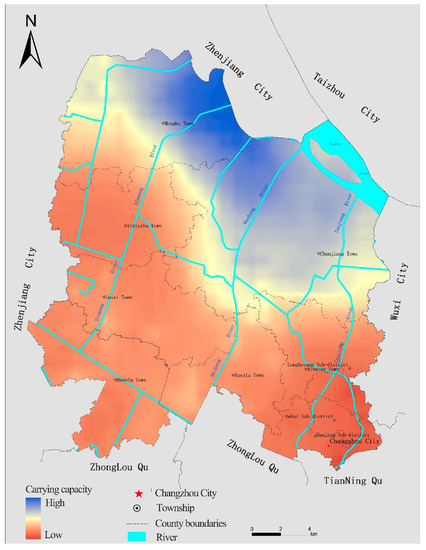 This study applied an integrated Multi-Factor assessment model to evaluate the environmental carrying capacity of Xinbei District in Changzhou. Generally, the comprehensive results show a declining trend from the northeast region along the Yangtze River to the southwest region with the mountainous area. In contrast, it shows lower comprehensive results in central Xinbei District. The results of this study are consistent with Clarke (2002) and Yang (2015) [18,34]. Areas with higher environmental carrying capacity are always associated with abundant natural resources [30]. While the mountainous areas, which were hindered by poor transportation and vulnerable environment, are supposed to bear lighter human activities [15]. In the light of the special natural environment of Xinbei, the northeast part of the district should accord with a high priority when planning for industries and cites. Meanwhile, a series of environmental protection measurements must be implemented along the Yangtze River to further reduce the volume of pollutant discharge.