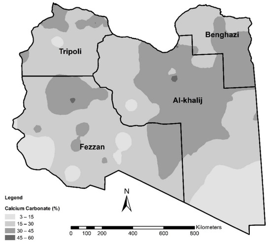 - World Soil Resources Reports. Land Resources Information in the Libyan Arab Jamahiriya. 2001. Available online: http://www.fao.org/tempref/docrep/fao/005/y4357e/y4357e09.pdf (accessed on 11 December 2018).