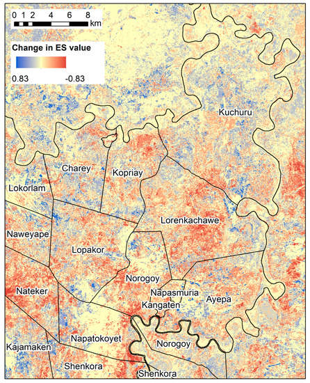 Semi-arid regions across Africa are undergoing a period of rapid environmental and social change. A major challenge is to ensure the adequate and reliable flow of essential ecosystem services (ES; the services humans receive from nature [1]) to meet the needs of the populations within these regions. A focus on ecosystem services is required given the global challenges we are facing, as addressed by the UN Sustainable Development Goals (SDGs) [2]. As acknowledged by the UN, the SDGs will be hard to achieve without the required resource base, which is a challenge if ES are decreasing. All social-ecological systems (SES) produce a “bundle” of ES and following [1], we acknowledge three major categories of ecosystem services—provisioning (e.g., water, grazing fodder), regulating (e.g., flood control and climate regulation), and cultural services (e.g., recreation, spiritual values)—assuming that supporting ES are included within these categories as they underlie their production. Framing semi-arid regions as SES provides an analytical framework through which change resulting from one or multiple system drivers (i.e., technological and engineering developments, land degradation, climate change) in a bounded geographical location, allows the identification of system dynamics over space and time [3]. Since its emergence, SES theory has integrated the concept of ES as a way of understanding the links between the ecological sub-system and the social sub-system [4,5]. When studying land-cover change, mapping of ES provides a way to explore both the spatial and temporal dynamics of the SES, allowing the study of both environmental change and the impact on communities utilizing the resources of that landscape. Maps are an important tool to bring ES into practical application; they help to assess distribution temporally and spatially, communicating complex information efficiently [6]. Maps also portray trade-offs and synergies for spatial congruence or mismatches between demand and supply of different ES [7,8,9]. For example, maps can be used to quantify and assess the spatial distance between areas of available ES and their beneficiaries and how ES correspondingly fluctuate with changes in land use and land cover patterns over time [8,10].