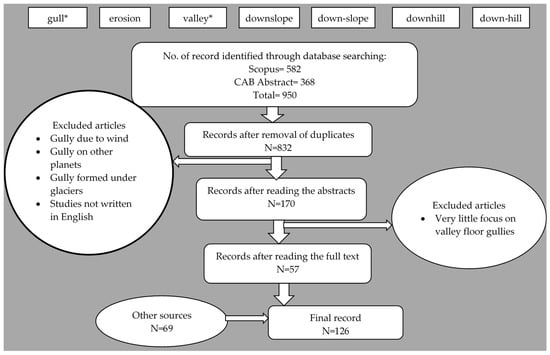 Articles that were not easily differentiated by their abstract were further probed by reading the study area description. Most papers studied valley bottom gullies as part of a wider set of gullies. We separated information concerning only valley bottom gullies, even from papers with a minor focus on valley bottom gullies. Based on our prior knowledge of the field, we included 69 mainly theoretical manuscripts that were relevant but did not fit the keywords selected. These articles were retrieved from Scopus, Google Scholar, and Research Gate. For this review, in a total of 126 articles and one book were used.