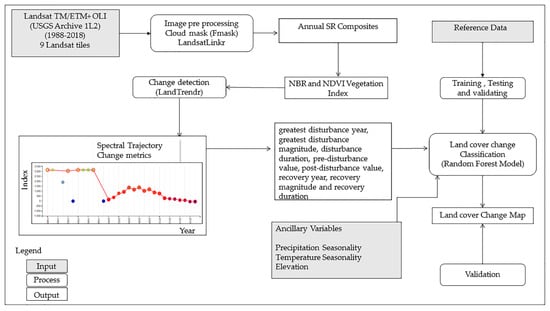 Land use and land cover change (LULCC) has been identified as a change driver worldwide [1], with the potential to adversely impact critical ecosystem services [2], including habitat fragmentation [2,3], depletion of biodiversity [4,5,6], decreasing land productivity [7,8], and changing climatic conditions [7,8,9,10,11]. As such, mapping and understanding LULCC has become a priority for many scientific disciplines and stakeholders across the planning, environmental and natural resource management areas [12,13].