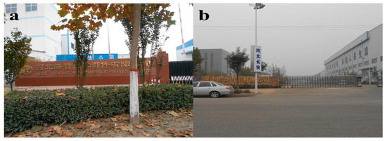 Industrial parks of Dingzhou in Nancheng Town: (a) Hebei Height Auto Parts Co., Ltd.; (b) Hebei Changan Automobile Co., Ltd.