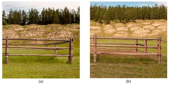 In the post-Soviet period, after the collapse of planned farms, private livestock became tied to pasture and hayfields near the communities. Thus, unsystematic grazing from early spring to late autumn for 145–165 days led to the complete degradation of pastures within a 3–5 km radius around settlements. Vegetation under such conditions is severely disturbed and represented by low-productivity species. The soil surface of pastures is often exposed; the foliage projective cover of the plants does not exceed 40–50% [].