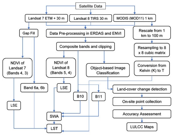 Finally, computation of LST using the Split-Window Algorithm (SWA) method was previously described by Rozenstein et al. [19], Isaya Ndossi and Avdan [46], Jiménez-Muñoz and Sobrino [47], and Li et al. [48]: