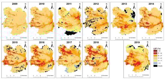 Images showing land surface temperature for the period 2009–2019.