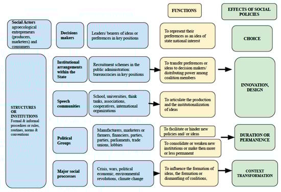 Entrepreneur training is directly associated with the factors and conditions enabled by public administrations in agroecological entrepreneurship projects. Moreover, the modernization of globalized economies and their labor markets allows the acquisition of wealth, which determines the different incomes of the population. It is this population which finds in the transformation processes of the agri-food system the option to choose natural products from organic farming over products derived from modern industrial agriculture. The public institutions that promote the industrial or ecological agriculture sector [34] and those consumers who decide to buy agroecological products play a very important role in this alternative.
